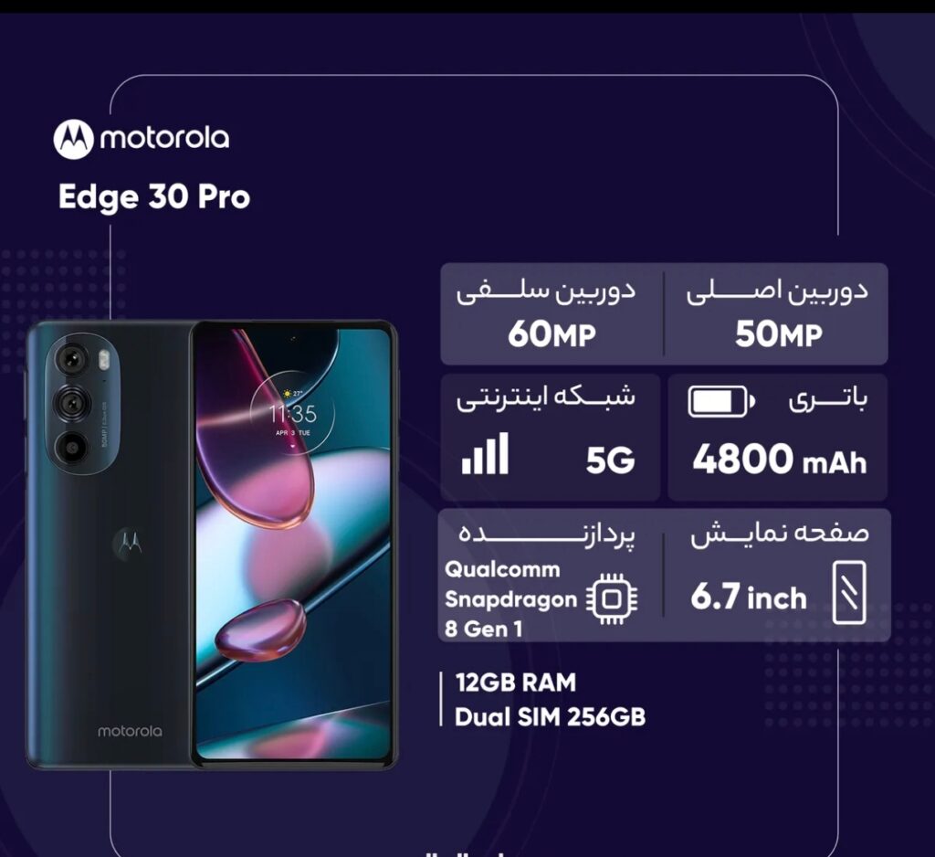 گوشی موبایل موتورولا مدل Edge 30 Pro دو سیم کارت ظرفیت 256 گیگابایت و رم 12 گیگابایت