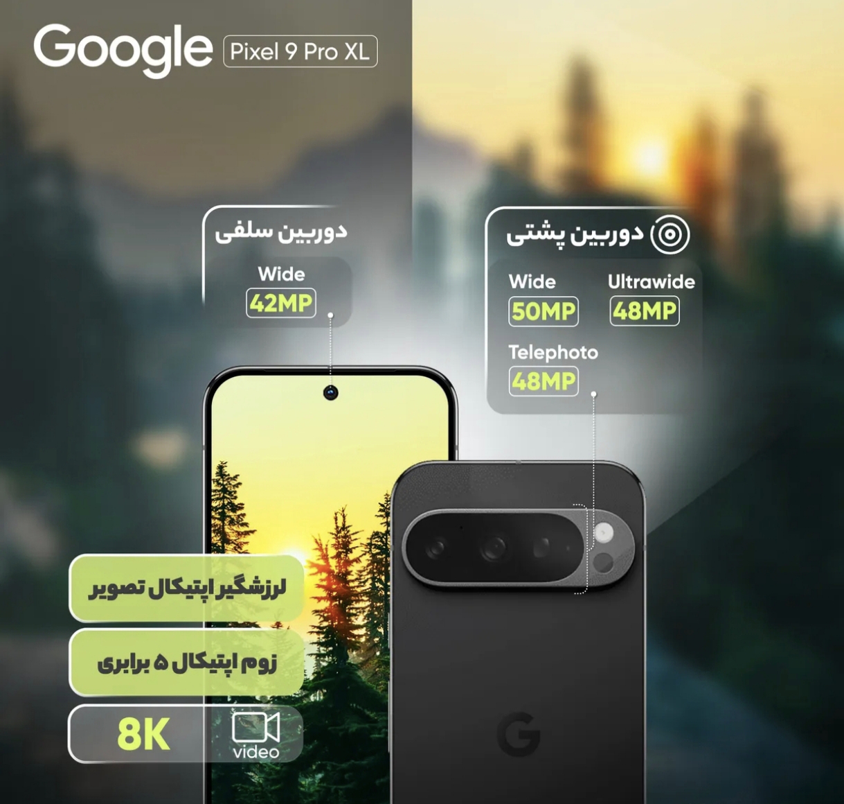 عملکرد Pixel 9 Pro XL بهدلیل استفاده از پردازندهی نسل جدید Google Tensor بسیار چشمگیر است. پردازنده Google Tensor G4 بهگونهای طراحی شده که بهینهسازیهای خاصی در زمینه هوش مصنوعی و یادگیری ماشین ارائه میدهد. این ویژگی باعث میشود تا گوشی بتواند بهراحتی و با سرعت بالا به درخواستهای کاربران پاسخ دهد. علاوه بر این، با استفاده از 16 گیگابایت رم، این گوشی قادر است چندین برنامه را بهصورت همزمان اجرا کند و هیچگونه کندی یا لگ احساس نخواهید کرد. چه در حال بازی کردن باشید، چه در حال ویرایش ویدئو، یا حتی استفاده از برنامههای سنگین، Pixel 9 Pro XL عملکردی بینظیر خواهد داشت و میتوانید کلیه وظایف موردنظر خودتان را با حداکثر سرعت انجام دهید. همچنین، این گوشی با ظرفیت ذخیرهسازی 256 گیگابایت در دسترس شما قرار میگیرد و میتوانید بهراحتی اطلاعات و فایلهای خود را ذخیره کنید. بهعلاوه، این دستگاه با سیستم خنککننده پیشرفتهای که دارد، از داغ شدن در هنگام استفادههای طولانیمدت جلوگیری میکند. بهاینترتیب، کاربران میتوانند بدون نگرانی از داغ شدن، از امکانات و قابلیتهای این گوشی بهرهمند شوند.دوربین Pixel 9 Pro XL