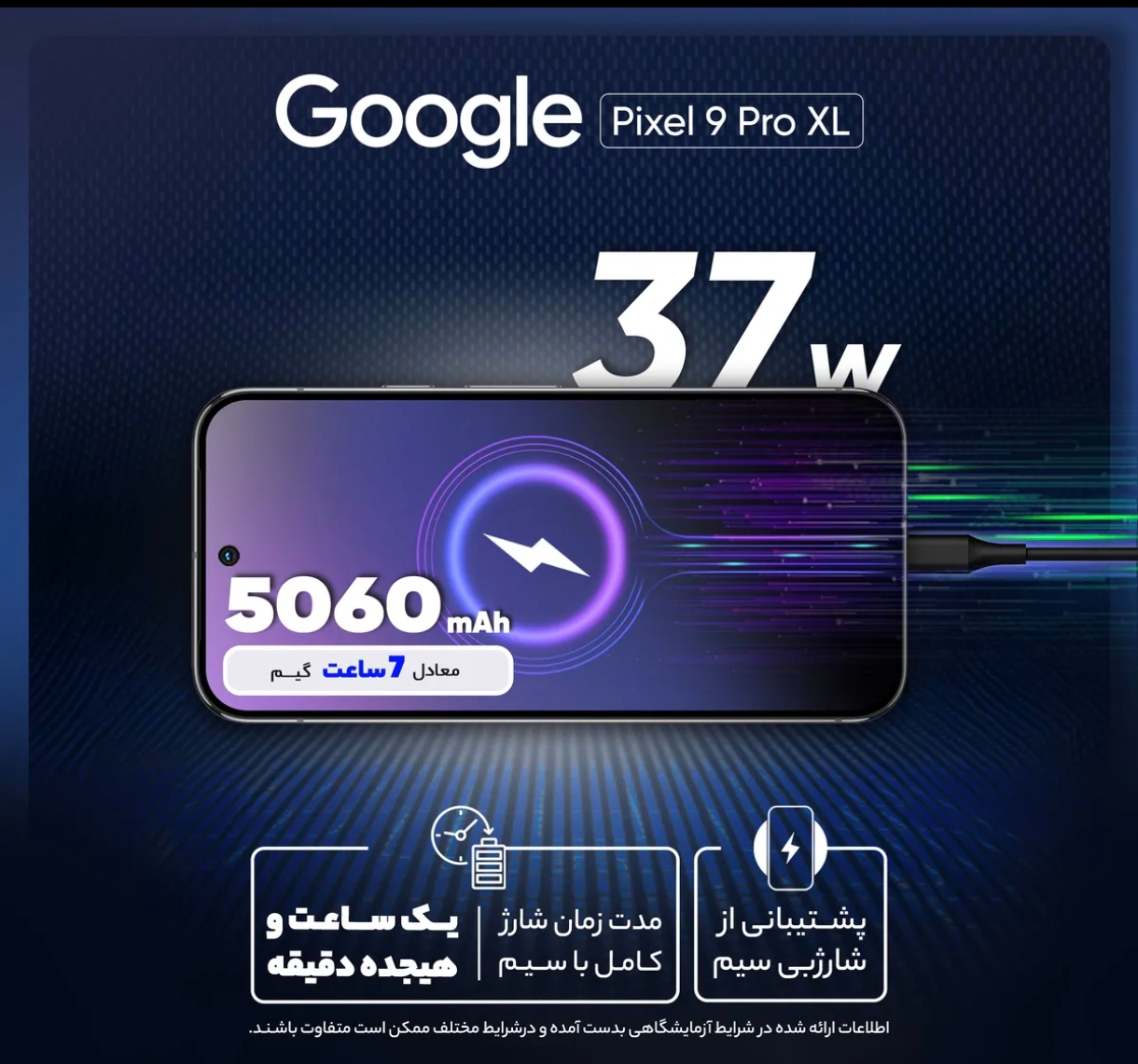 باتری Pixel 9 Pro XL با ظرفیت 5060 میلیآمپری خود بهگونهای طراحی شده که بتوانید پس از شارژ کامل، حداقل یک روز کامل از آن استفاده کنید. این گوشی با بهینهسازیهای نرمافزاری و سختافزاری، مصرف انرژی را به حداقل رسانده و به کاربران این امکان را میدهد که بدون نگرانی از اتمام شارژ، از امکانات آن استفاده کنند. همچنین، با قابلیت شارژ سریع 37 واتی، کاربران میتوانند در مدت زمان کوتاهی باتری گوشی را بهطور قابل توجهی شارژ کنند، که این ویژگی در مواقع اضطراری بسیار کاربردی است. علاوه بر این، قابلیت شارژ بیسیم نیز در این گوشی موجود است که به کاربران این امکان را میدهد تا بهراحتی و بدون نیاز به کابل، باتری گوشی خود را شارژ کنند. در تستهای انجامشده، این دستگاه توانسته است بیش از 10 ساعت استفاده مداوم را در شرایط مختلف مدیریت کند، که نشاندهنده کارایی بالای آن است. بهطور کلی، باتری و شارژدهی Pixel 9 Pro XL یکی از نقاط قوت بزرگ این گوشی به شمار میرود و کاربران را از نگرانیهای مربوط به اتمام شارژ در طول روز آزاد میکند.